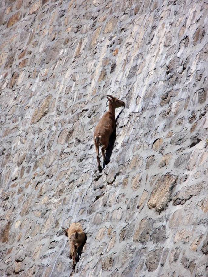 They are European Ibex and they like to eat the moss and lichen & lick the salt off the dam wall.
