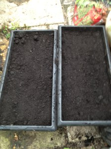 Cover with soil, and gently firm the top. I leave a gap between the top of the pot and the soil to make watering easier.